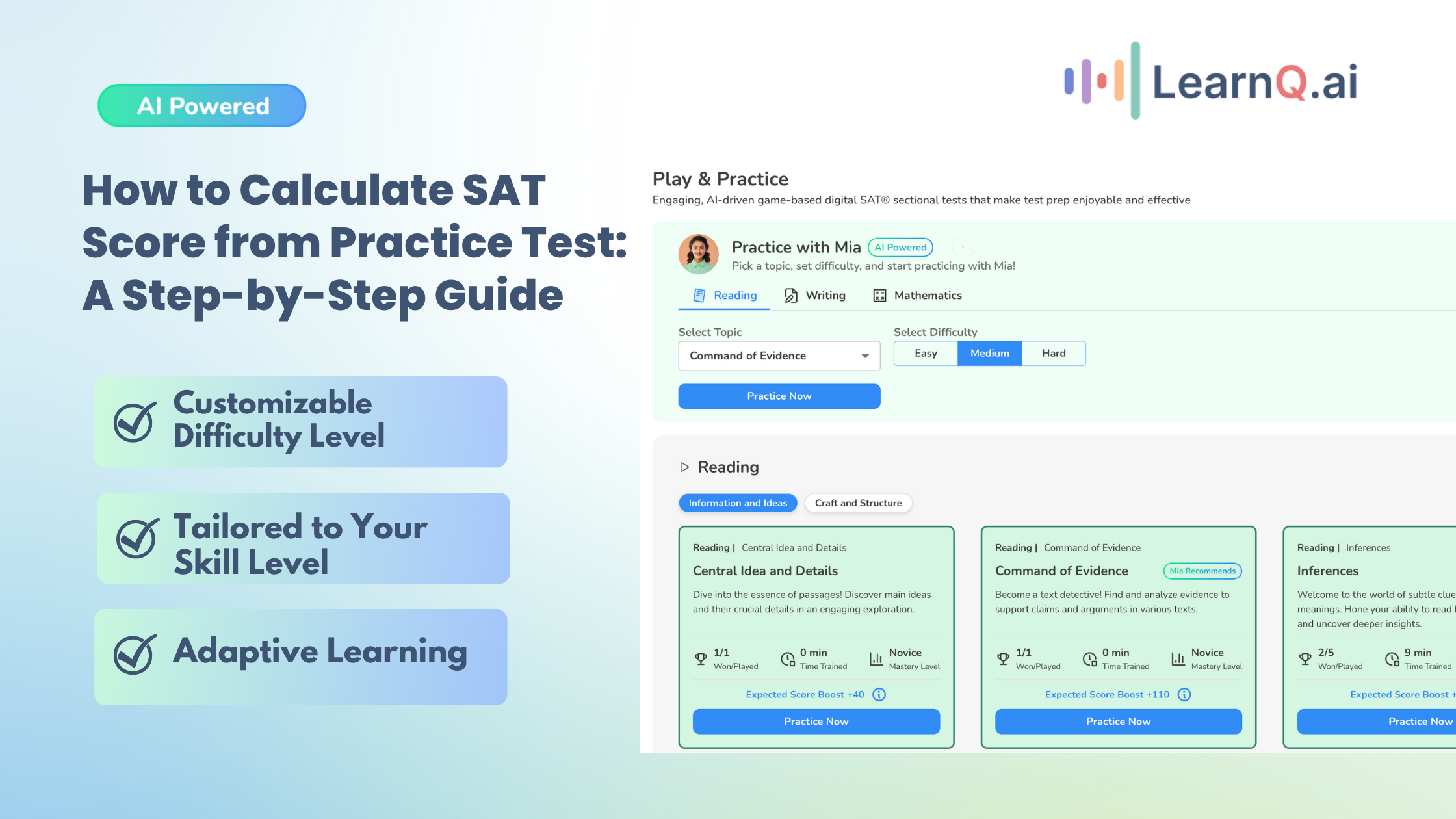 Preparing for the SAT Math section takes more than just understanding formulas and concepts; it requires a structured approach, targeted practice, and insights into personal progress. LearnQ.ai offers a comprehensive and adaptive platform designed to maximize your preparation through personalized practice, detailed feedback, and interactive learning tools. Here’s how LearnQ.ai can elevate your SAT Math prep: